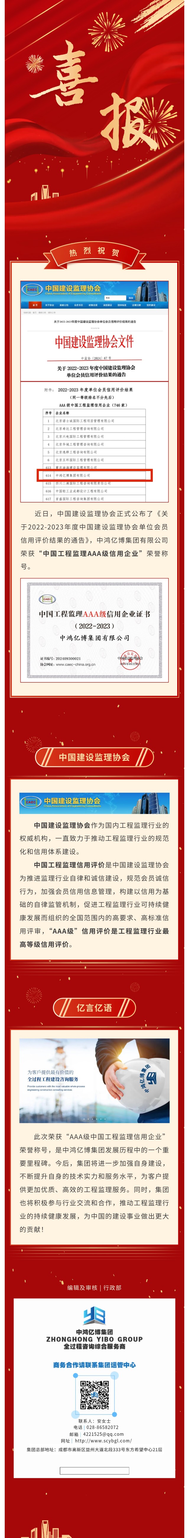 億博動(dòng)態(tài) | 喜報(bào)!祝賀集團(tuán)榮獲中國(guó)建設(shè)監(jiān)理協(xié)會(huì)“中國(guó)工程監(jiān)理AAA 級(jí)信用企業(yè)”榮譽(yù)稱號(hào)