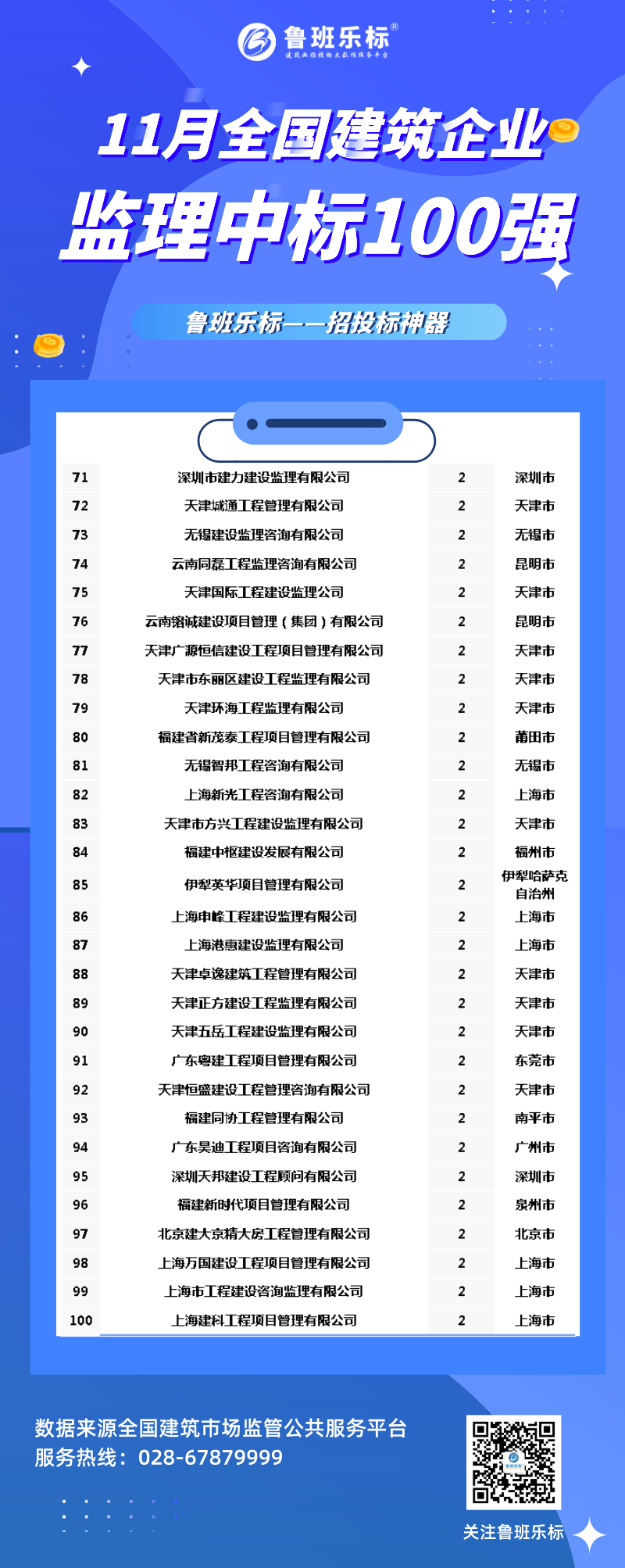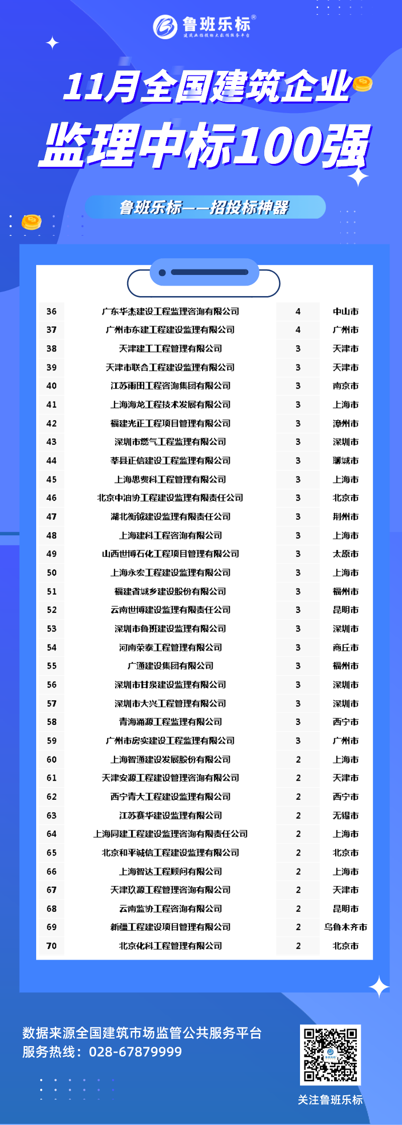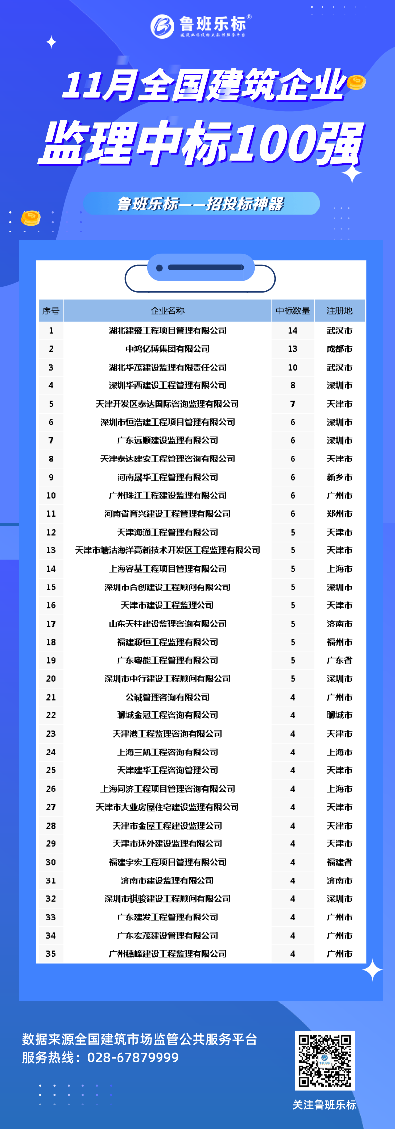 湖北建盛工程項目管理有限公司以中標14個居榜首;