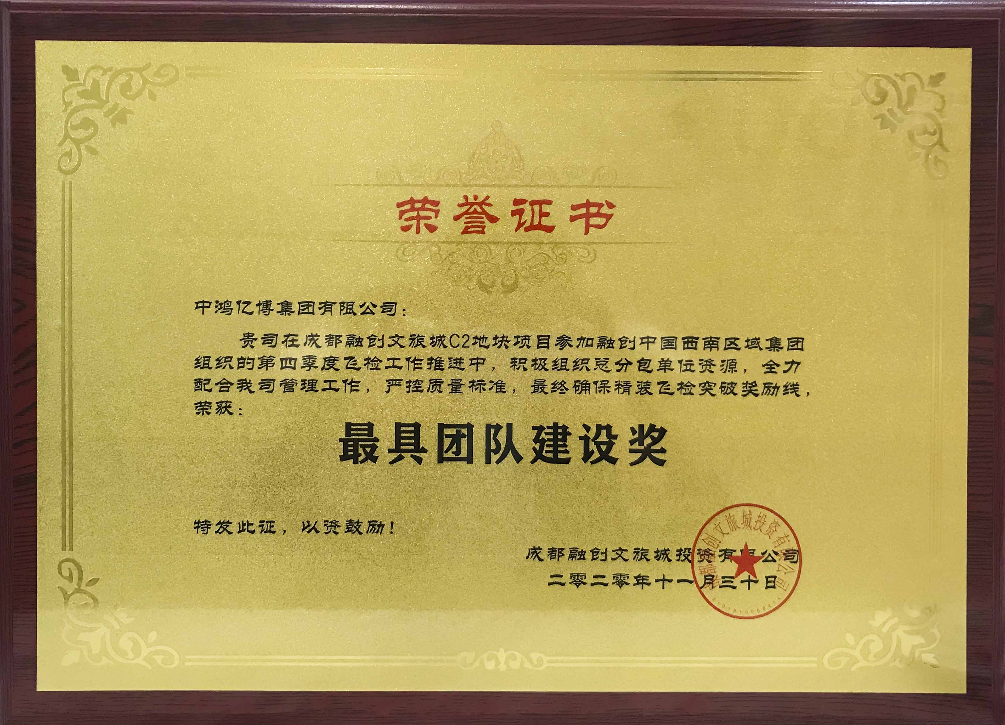 成都融創(chuàng)文旅城C2地塊榮獲“最具團隊建設(shè)獎”