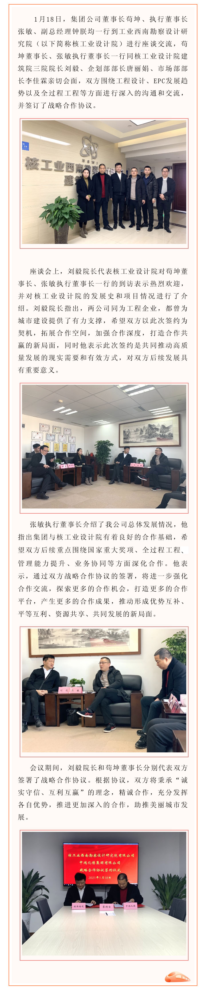 集團公司與核工業(yè)西南勘察設(shè)計研究院簽署戰(zhàn)略合作協(xié)議