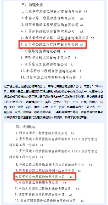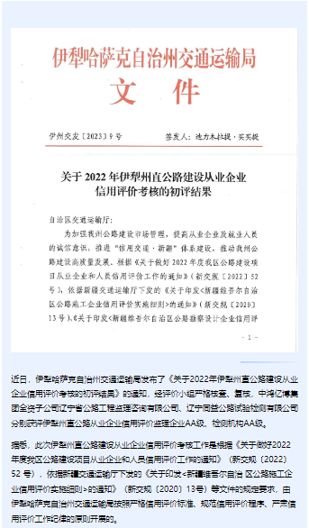 集團(tuán)全資子公司獲評伊犁州直公路從業(yè)企業(yè)信用評價“監(jiān)理企業(yè)和檢測機(jī)構(gòu)AA級”